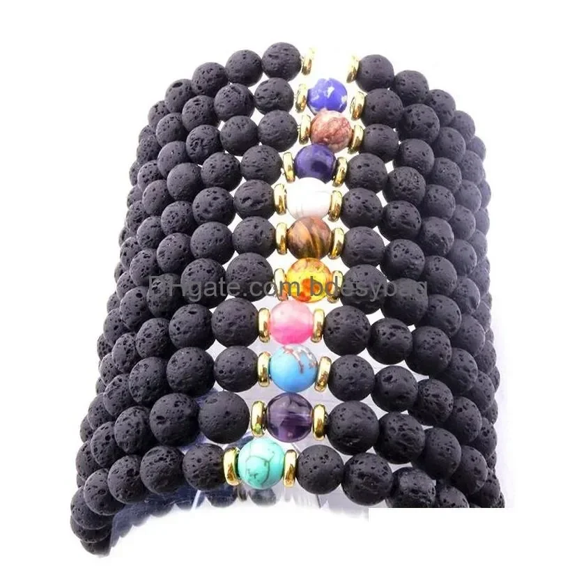 Natural Black Lava Stone Turquoise Tigers Eye Bracelet Vaolcano Aromatherapy Essential Oil Diffuser